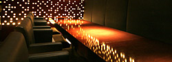 従来のバーのようにバーテンダーと向き合う形で飲むスタイルではなく、自分達の空間の中で好きなものを食べて飲んで頂きたいため、バーカウンターは短くなっています。またディスプレイは全て、バカラのタンブラー、ワイングラスだけで構成していて、リキュール類、ワインなどのボトルは、一切陳列をしていません。上品な大人の空間をお楽しみ下さい。