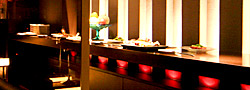 ステーキのブースがガラス超しに見えます。素材の確かさ、そして本物の和牛サーロインを焼き上げるパフォーマンスをご覧下さい。 |